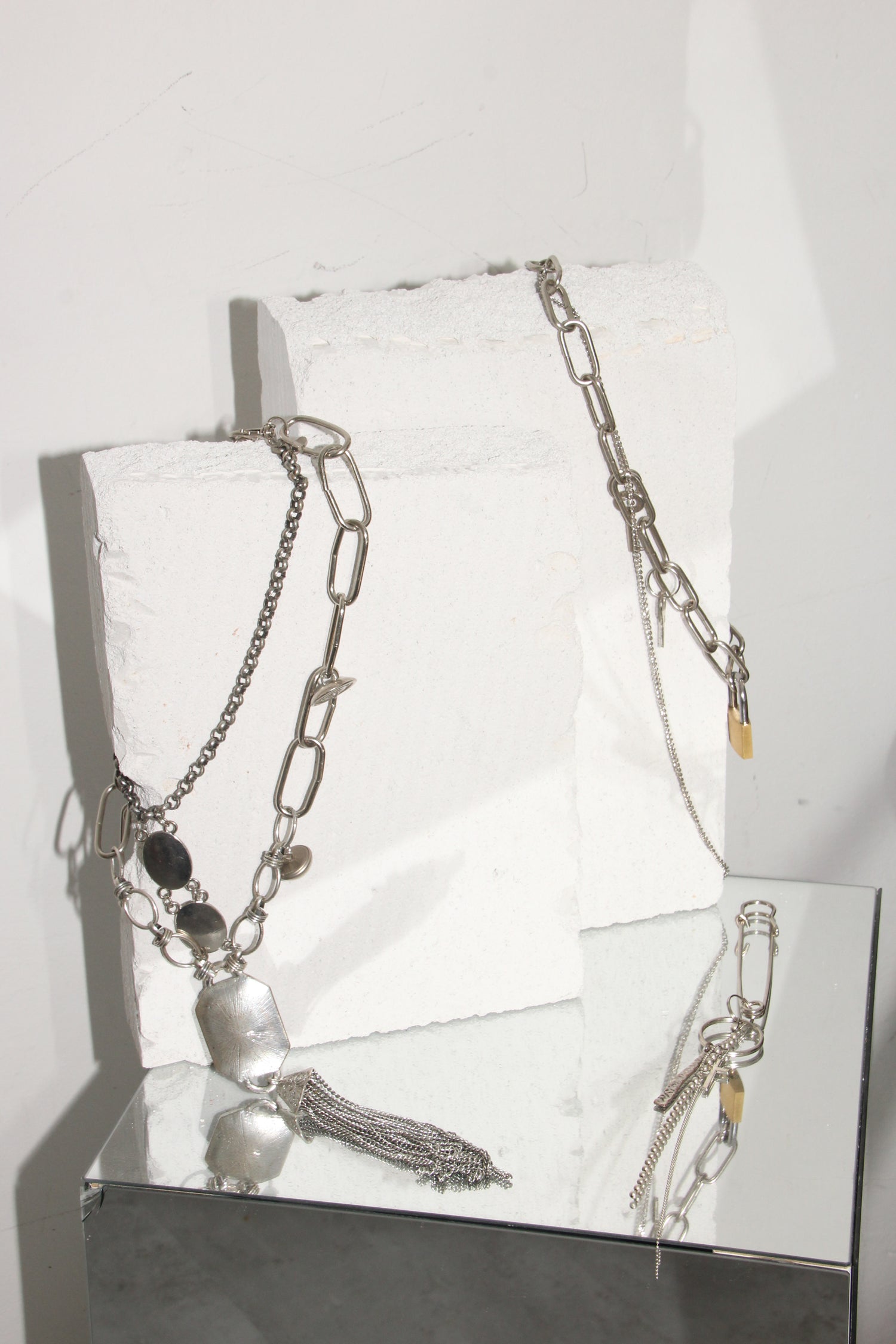 Each piece begins as a secret, something that was left behind in the quiet corners of a thrift shop. Tarnished chains, orphaned earrings, fragments of once-loved adornments.